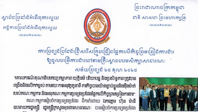 សេចក្តីជូនដំណឹង ស្តីពី កិច្ចប្រជុំលើកទី៤ អាណត្តិទី៤ នៃក្រុមប្រឹក្សាជាតិប្រឆាំងអំពើពុករលួយ (ក.ជ.ប.ព.)ថ្ងៃព្រហស្បតិ៍ ៩កើត ខែមិគសិរ ឆ្នាំម្សាញ់ សប្តស័ក ព.ស.២៥៦៩ ត្រូវនឹងថ្ងៃទី២៧ ខែវិច្ឆិកា ឆ្នាំ២០២៥។ ..អានបន្ត..