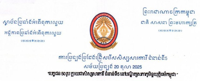 ការប្រឡងប្រជែងជ្រើសរើសសិស្សសារការី ជំនាន់ទី5 សម័យប្រឡង 20 តុលា 2025។ ..អានបន្ត..