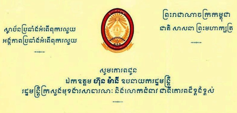 លិខិតជូនពរ របស់ កិត្តិនីតិកោសលបណ្ឌិត ទេសរដ្ឋមន្ដ្រី ឱម យ៉ិនទៀង ប្រធានអង្គភាពប្រឆាំងអំពើពុករលួយ ព្រមទាំងថ្នាក់ដឹកនាំ និងមន្ត្រីរាជការ នៃអង្គភាពប្រឆាំងអំពើពុករលួយ សូមគោរពជូន សម្តេចអគ្គមហាពញាចក្រី ហេង សំរិន ប្រធានកិត្តិយសនៃក្រុមឧត្តមប្រឹក្សាផ្ទាល់ព្រះមហាក្សត្រ នៃព្រះរាជាណាចក្រកម្ពុជា និងសម្តេចធម្មវិសុទ្ធវង្សា ជាទីគោរពដ៏ខ្ពង់ខ្ពស់បំផុត ក្នុងឱកាសដ៏នក្ខត្តឫក្ស នៃពិធីបុណ្យចូលឆ្នាំថ្មី ឆ្នាំសកល ២០២៦។ ..អានបន្ត..
